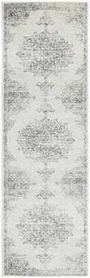Perfectly on trend for tribal, this monochromatic palette and vintage design meet to create a rug with elegance and subtlety. Power loomed with a polypropylene pile, this rug is non-shed and easy care. These rugs offer style, versatility and are available in rectangles, rounds, and runners in a large variety of sizes.