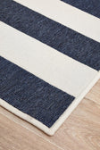 Navy and white stripes create a bit of nautical flair, bringing a coastal look instantly. This easy-care collection is designed to be used outdoors as well as indoors, these rugs are water resistant and will add an element of fun to any space. This short, easy to clean pile made from durable polypropylene and is power loomed.